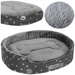 Owalne legowisko kojec dla psa Welsti ciemny szary srebrne kości i łapki XL 80x67 antypoślizgowy
