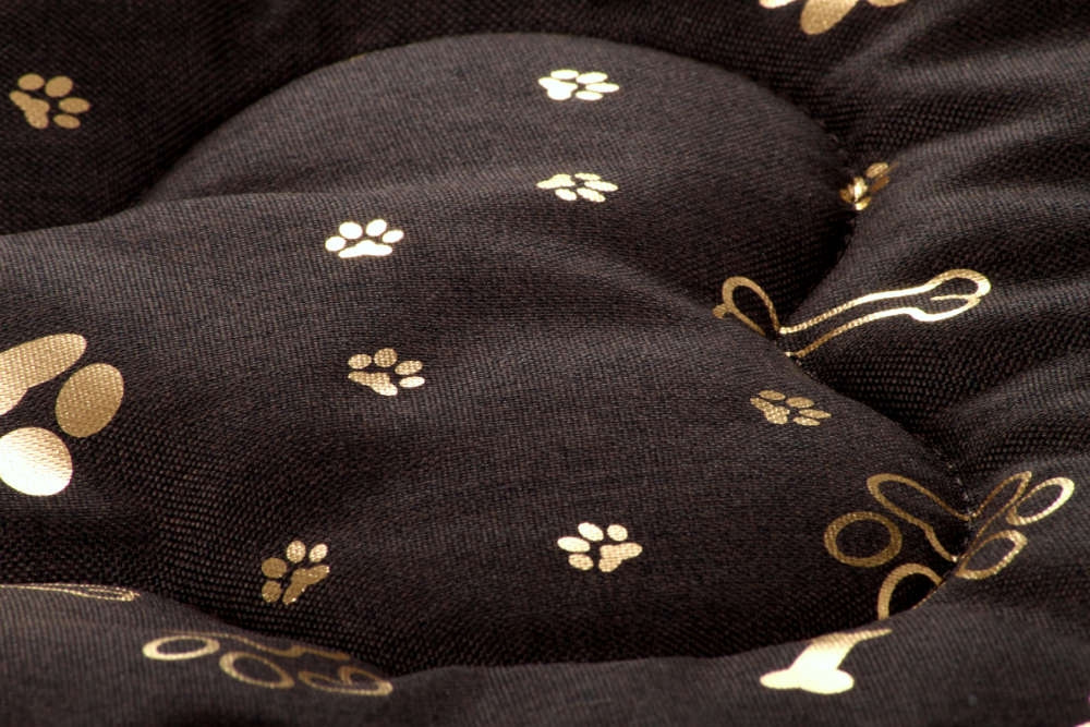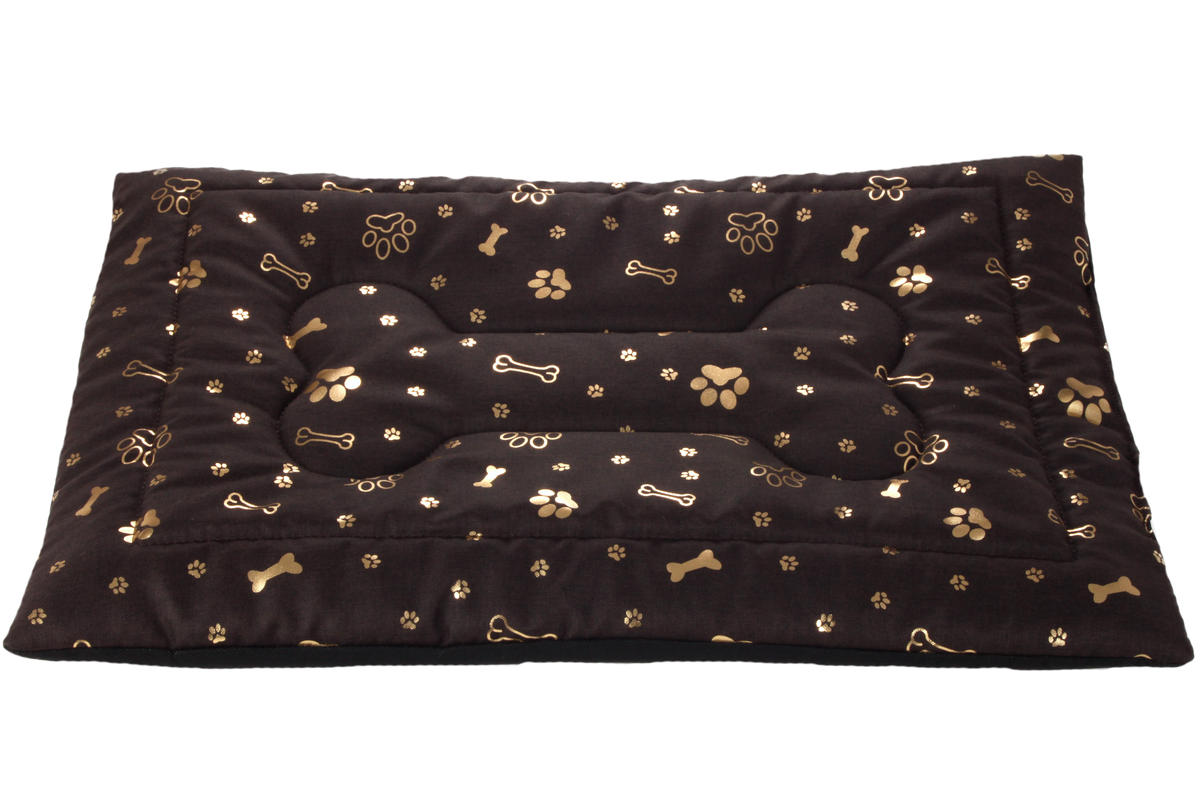 Legowisko mata dla psa Welsti brązowa złote kości i łapki L 100x70 antypoślizgowa