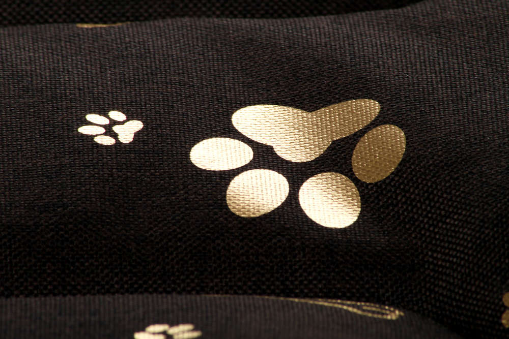 Legowisko mata dla psa Welsti brązowa złote kości i łapki M 70x50 antypoślizgowa
