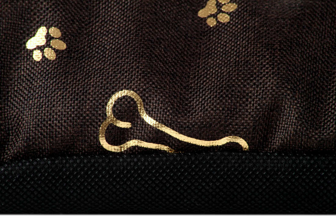 Legowisko mata dla psa Welsti brązowa złote kości i łapki M 70x50 wigofil