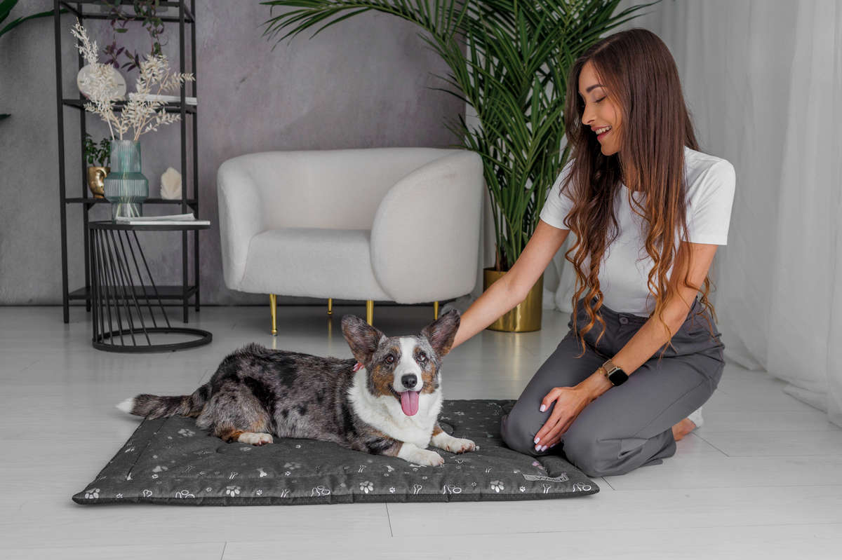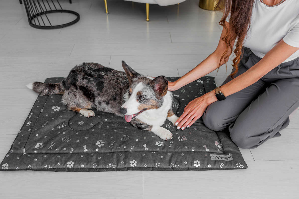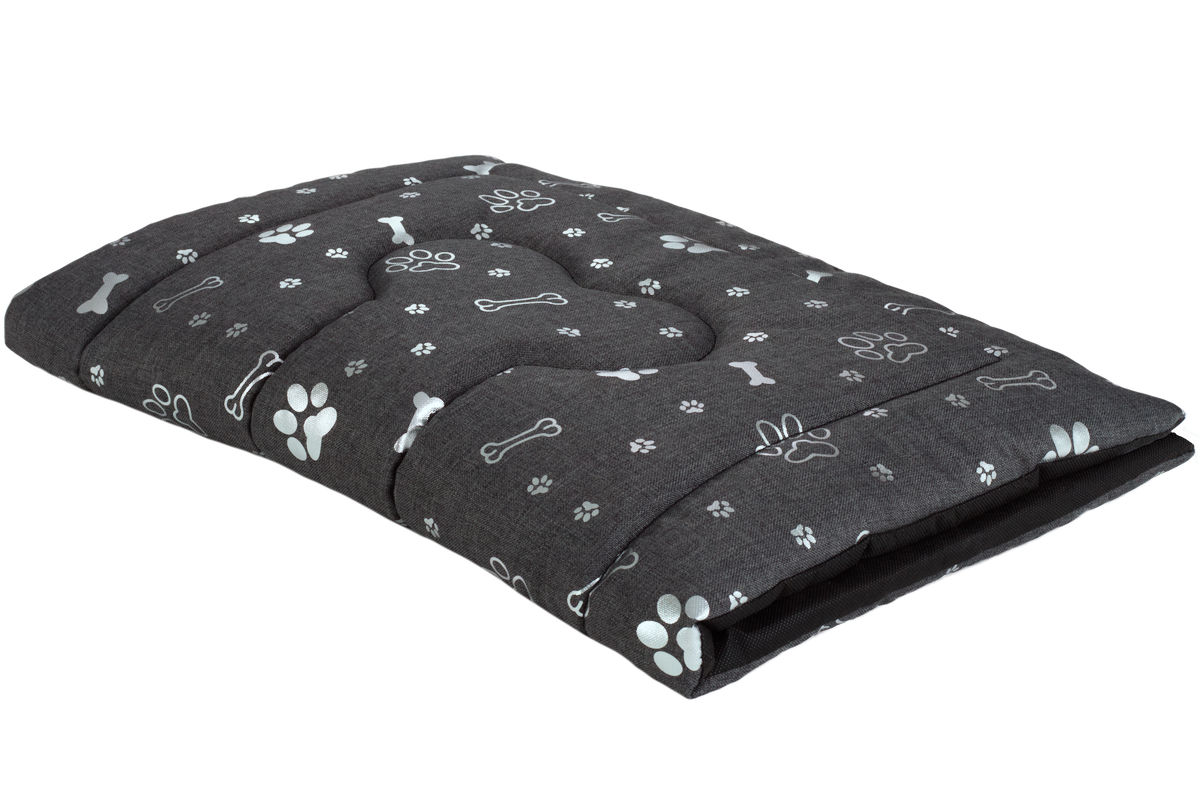 Legowisko mata dla psa Welsti ciemna szara srebrne kości i łapki L 100x70 antypoślizgowa