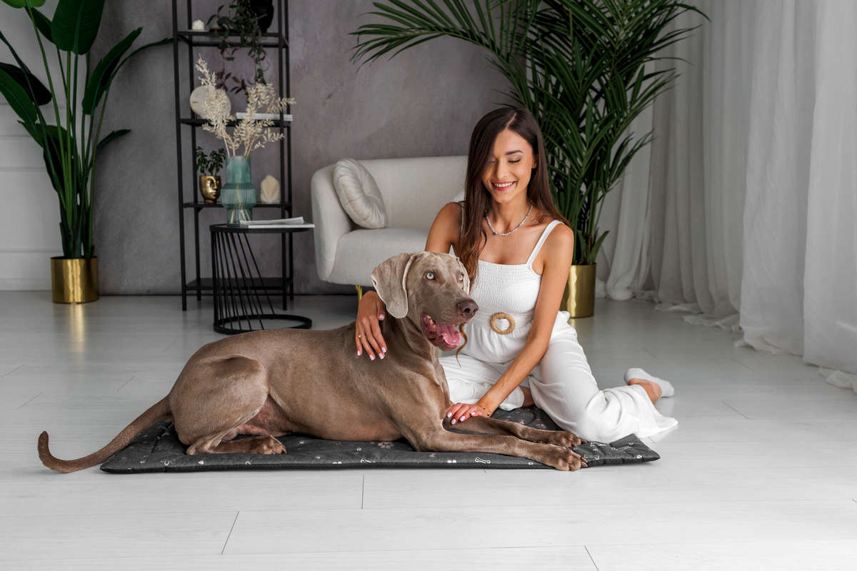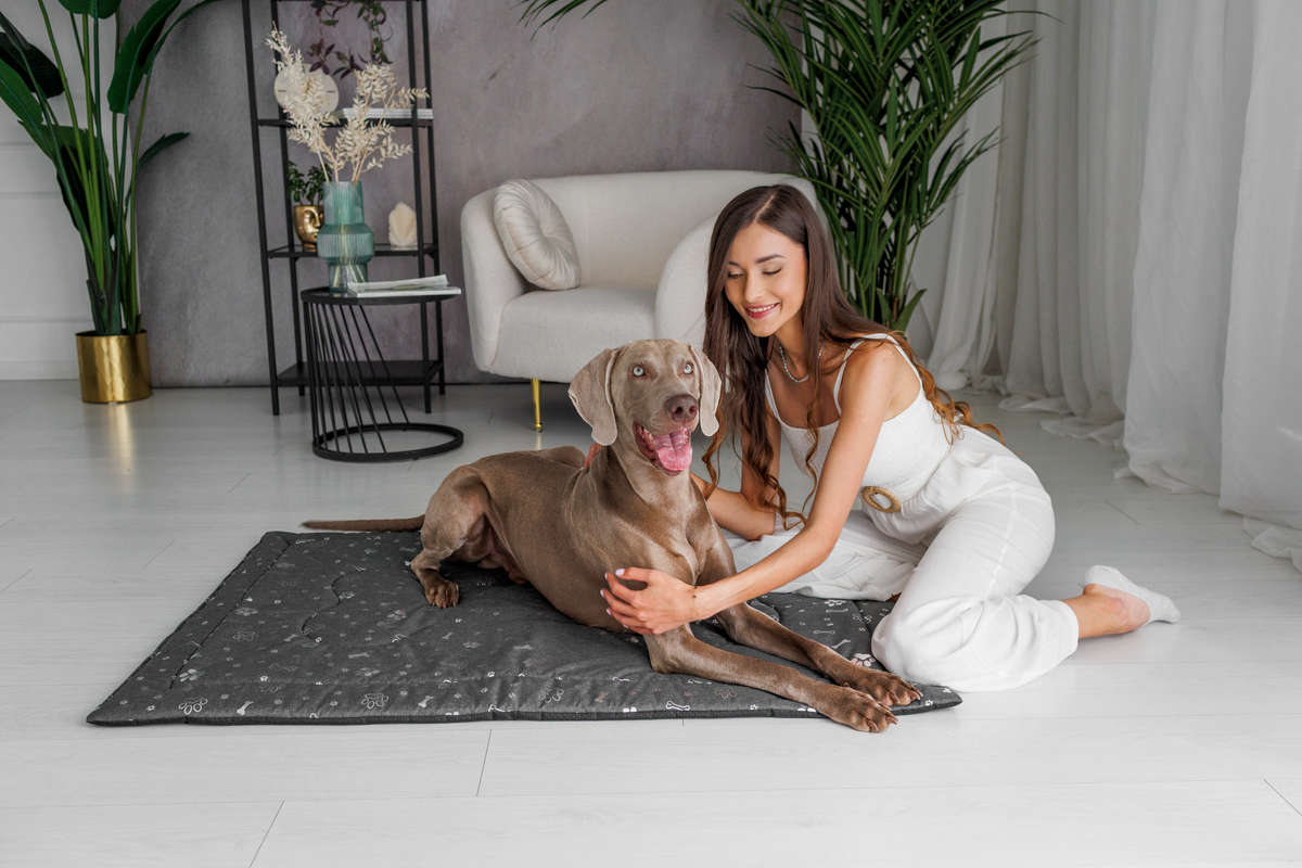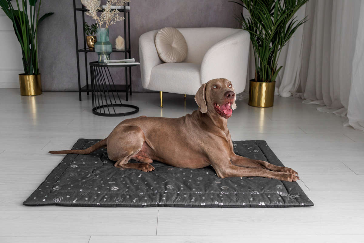 Legowisko mata dla psa Welsti ciemna szara srebrne kości i łapki XL 130x90 antypoślizgowa