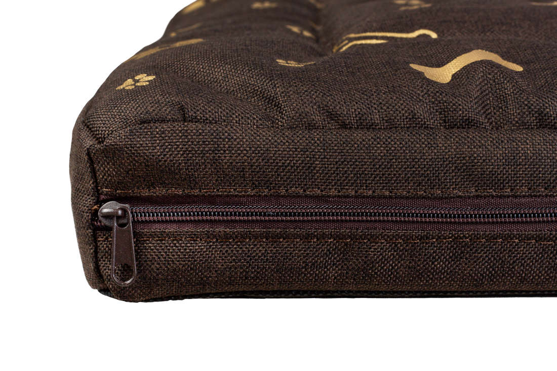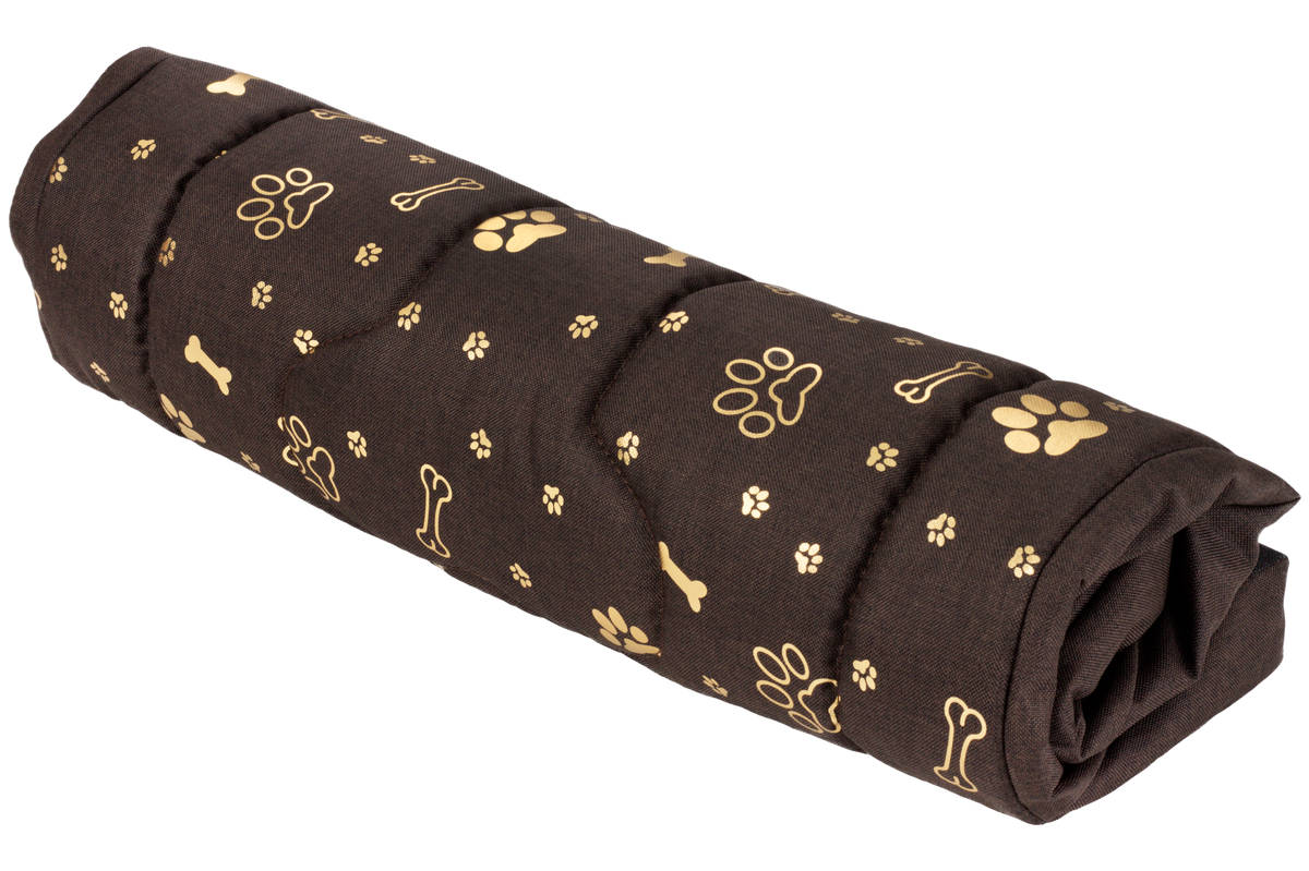 Legowisko materac dla psa Welsti brązowy złote kości i łapki L 100x70 antypoślizgowy
