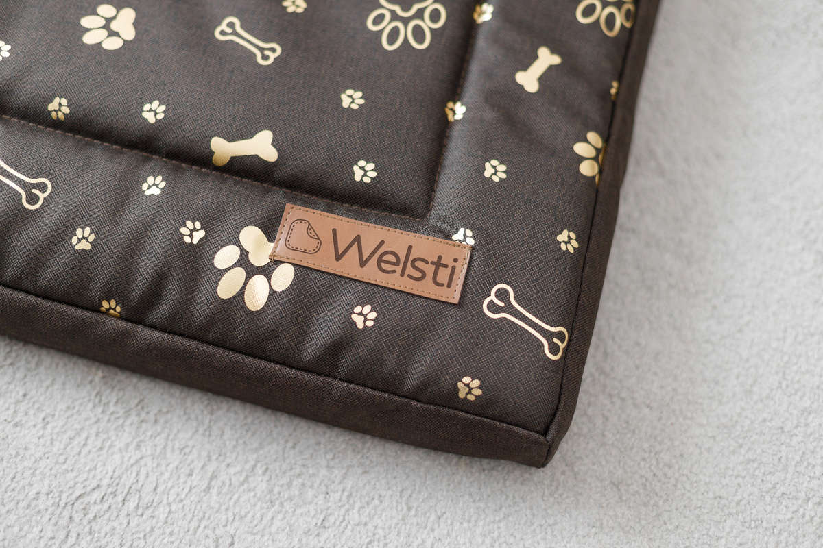 Legowisko materac dla psa Welsti brązowy złote kości i łapki M 70x50 wigofil