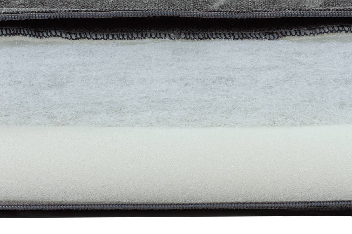 Od góry 2,5cm miękkiej i sprężystej owaty, a pod nią pianka pierwszego gatunku o grubości 3cm. Takie połączenie sprawia że legowisko jest jednocześnie miękkie i nie ubija się szybko trzymając swój kształt.