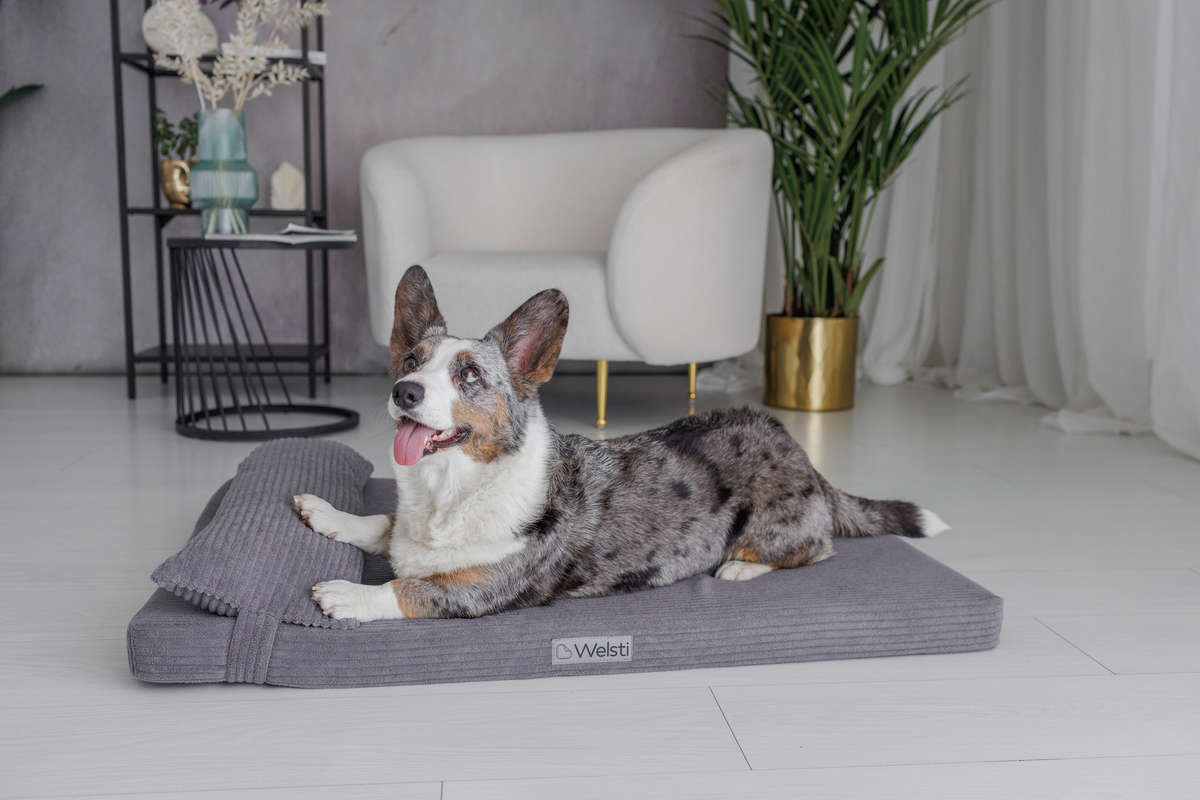 Legowisko materac dla psa Welsti ciemny szary gładki kość M 70x50 wigofil