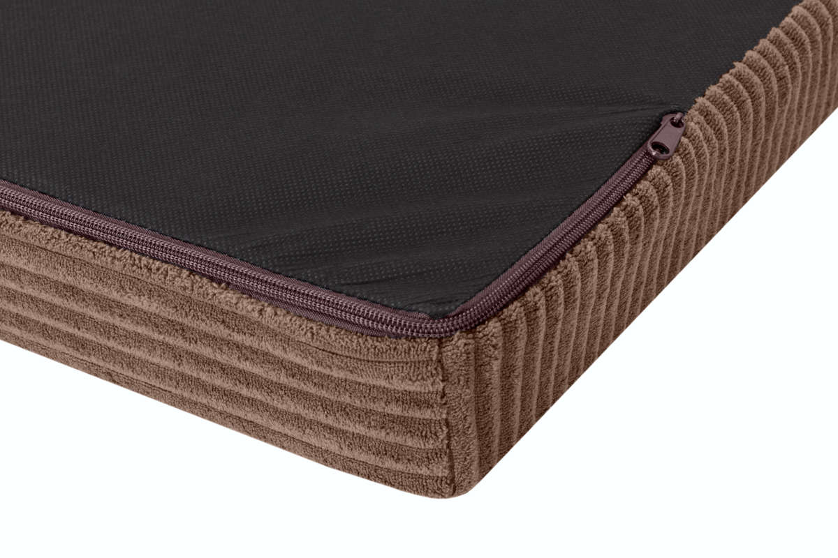 Od góry 2,5cm miękkiej i sprężystej owaty, a pod nią pianka pierwszego gatunku o grubości 3cm. Takie połączenie sprawia że legowisko jest jednocześnie miękkie i nie ubija się szybko trzymając swój kształt.
