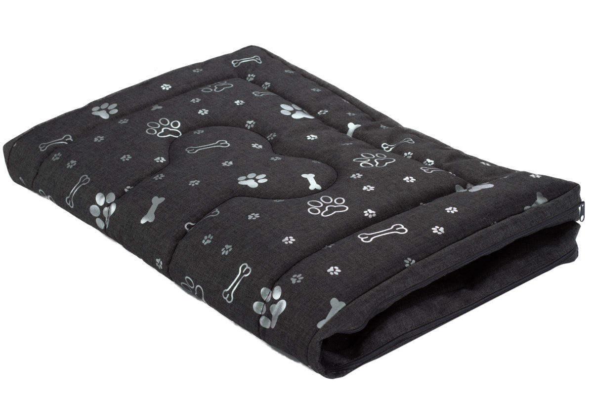 Legowisko materac dla psa Welsti ciemny szary srebrne kości i łapki L 100x70 antypoślizgowy