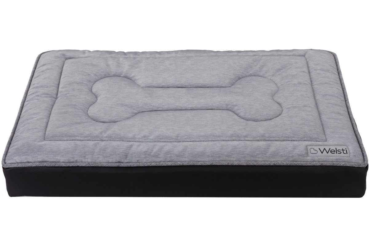 Legowisko materac dla psa Welsti ciemny szary srebrne kości i łapki L 100x70 antypoślizgowy