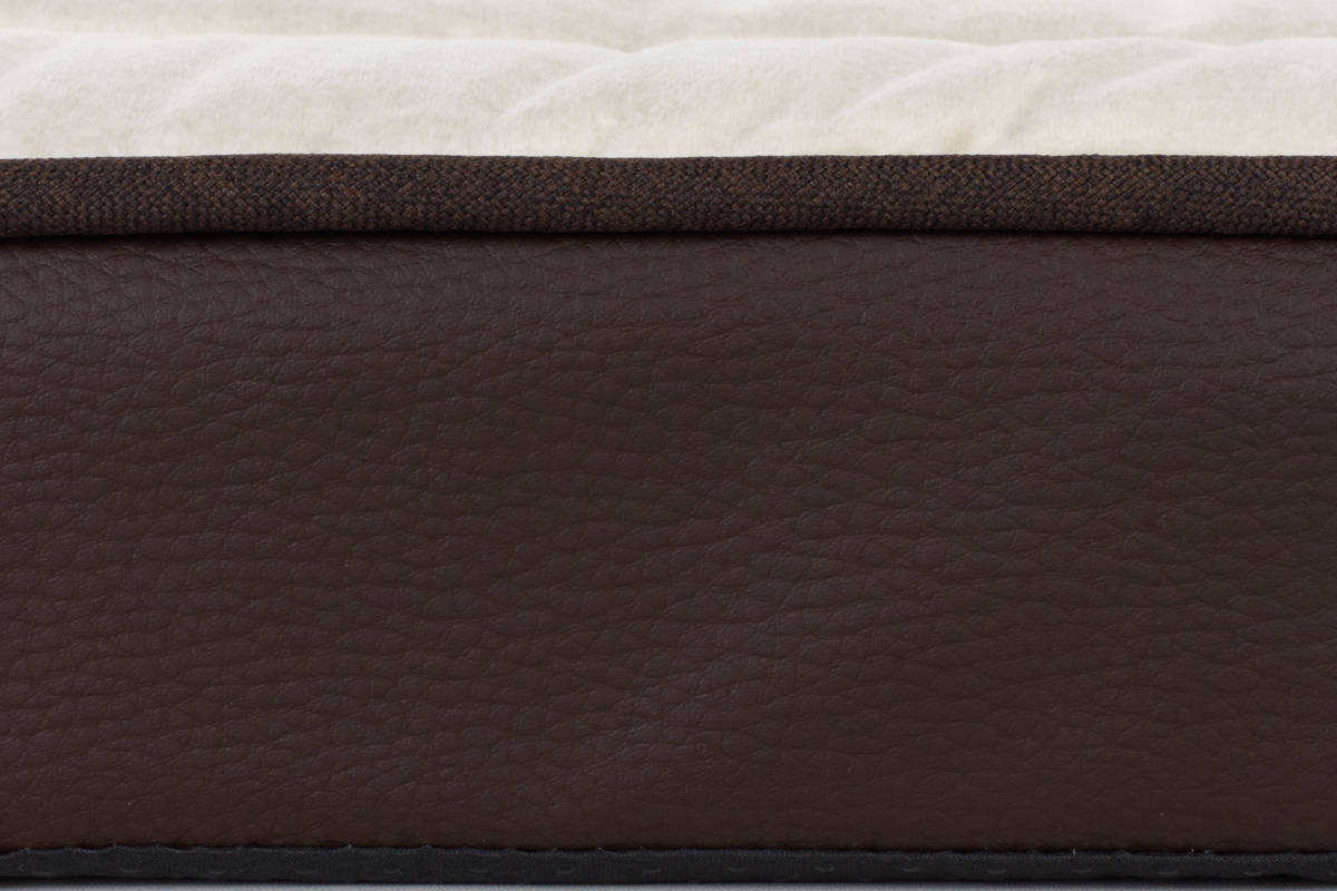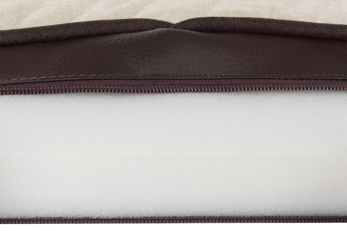 Od góry 2,5cm miękkiej i sprężystej owaty, a pod nią pianka pierwszego gatunku o grubości 3cm. Takie połączenie sprawia że legowisko jest jednocześnie miękkie i nie ubija się szybko trzymając swój kształt.
