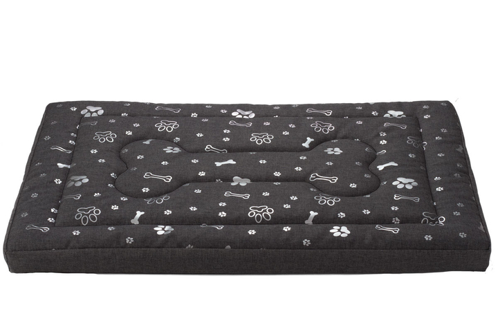 Legowisko materac dla psa Welsti ciemny szary srebrne kości i łapki M 70x50 antypoślizgowy