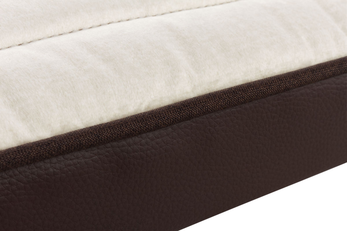 Od góry 2,5cm miękkiej i sprężystej owaty, a pod nią pianka pierwszego gatunku o grubości 3cm. Takie połączenie sprawia że legowisko jest jednocześnie miękkie i nie ubija się szybko trzymając swój kształt.