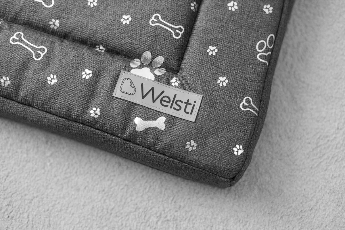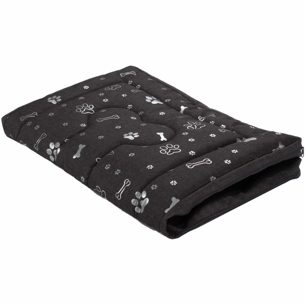 Legowisko materac dla psa Welsti ciemny szary srebrne kości i łapki M 70x50 wigofil
