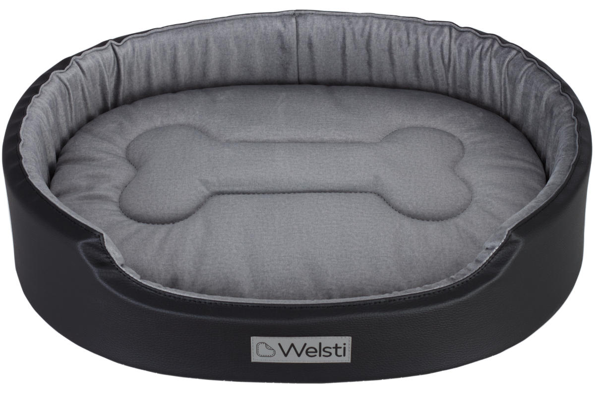 Owalne legowisko kojec dla psa Welsti ciemny szary srebrne kości i łapki L 68x55 antypoślizgowy