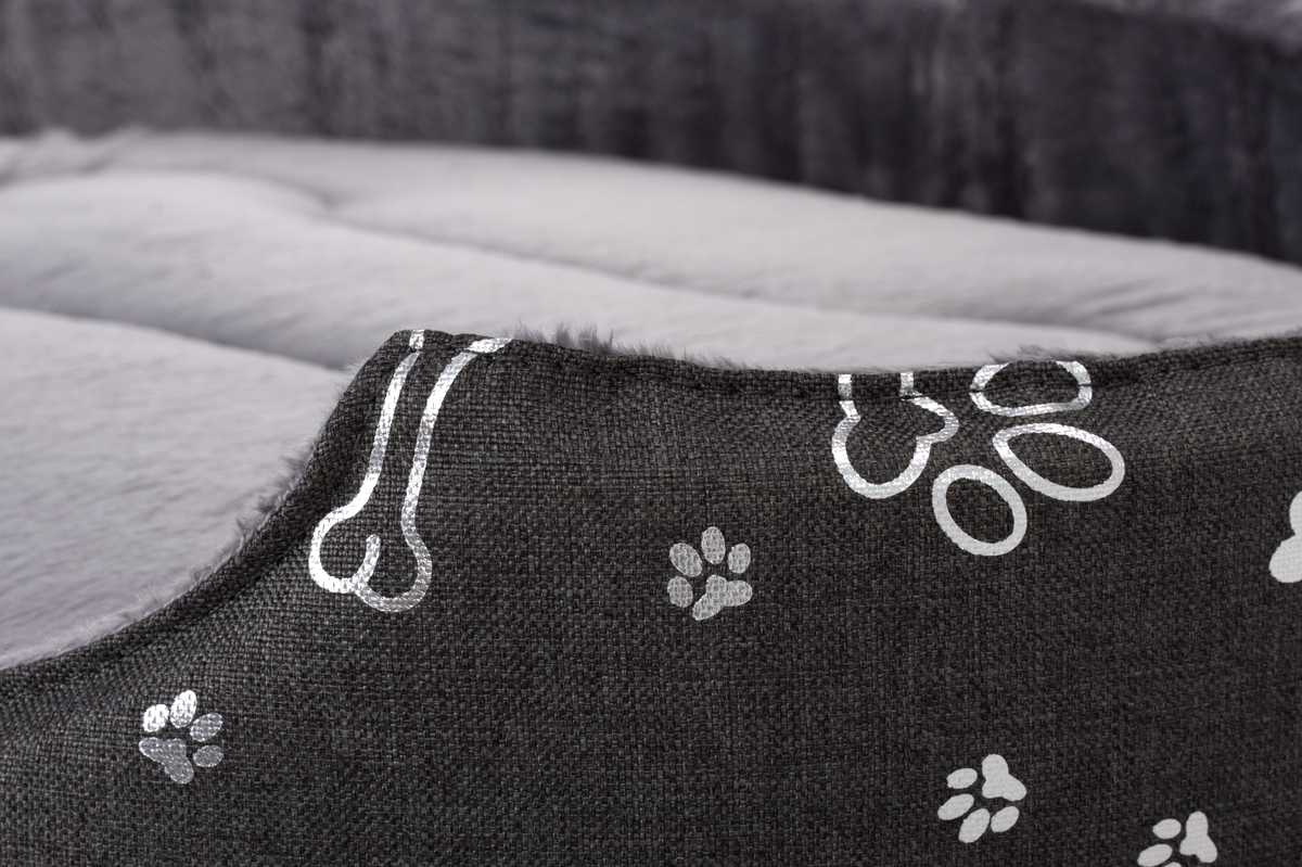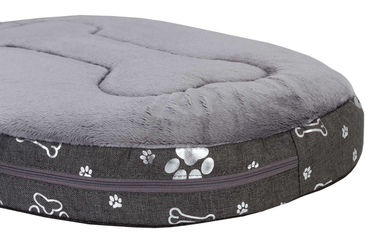 Owalne legowisko kojec dla psa Welsti ciemny szary srebrne kości i łapki XL 80x67 antypoślizgowy