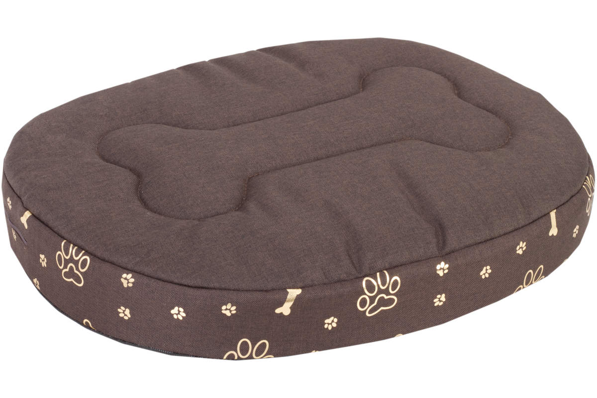 Owalne legowisko kojec dla psa Welsti ciemny szary srebrne kości i łapki XL 80x67 antypoślizgowy